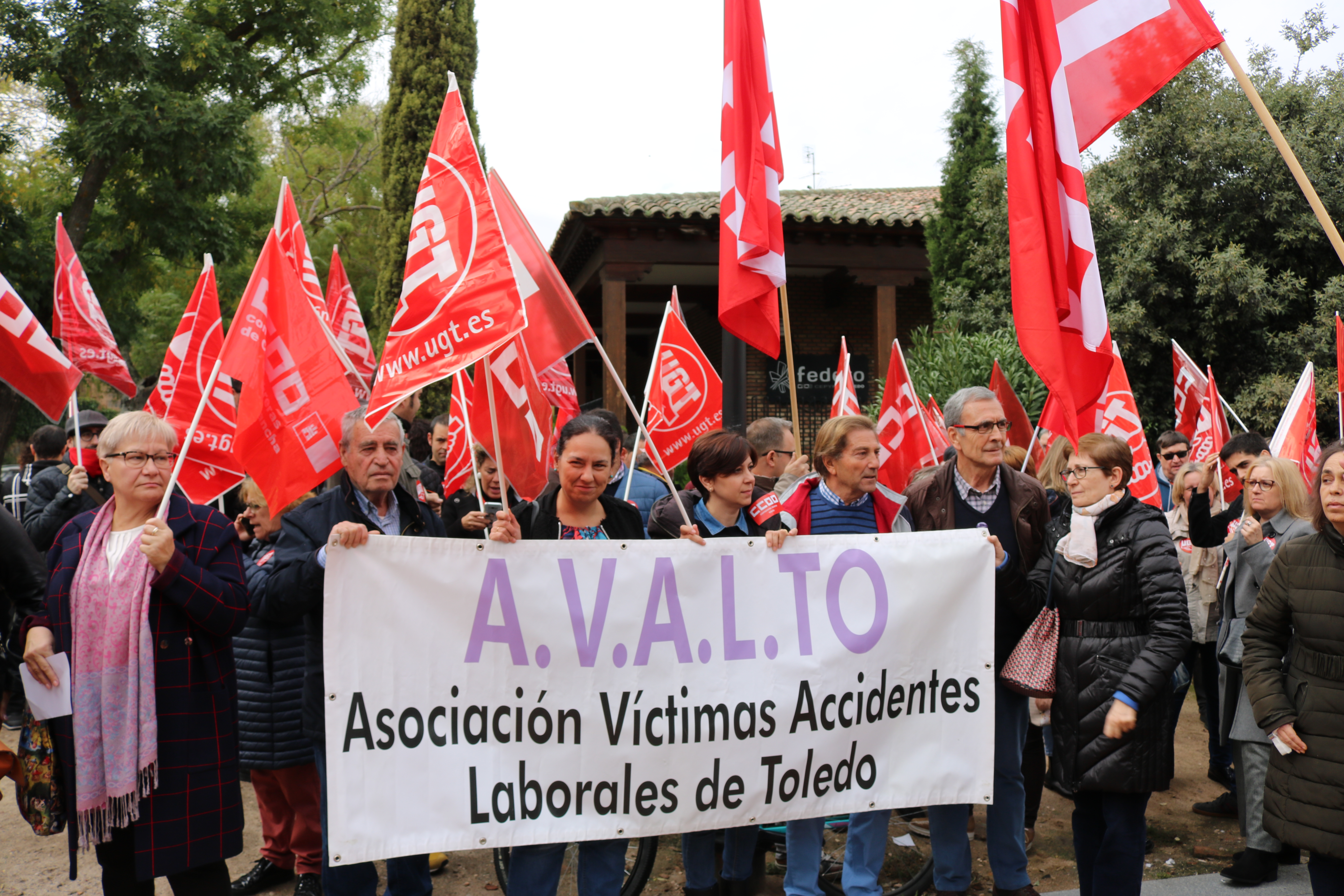 Esta mañana los sindicatos UGT y CCOO y la Asociación de Víctimas de Accidentes Laborales de la provincia de Toledo (AVALTO) se han manifestado a las puertas de la Federación Empresarial Toledana (FEDETO) para visibilizar los altos índices de siniestralidad en la provincia y exigir medidas para frenarlos.